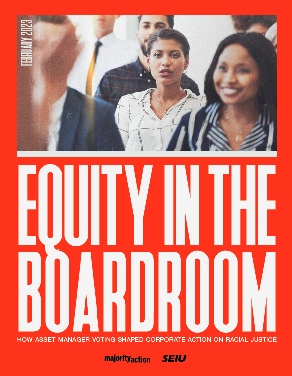 Three years after asset managers pledged to address racial inequity, this Majority Action report reveals that BlackRock, Vanguard, State Street, and Fidelity still lack strong proxy voting policies—leaving critical systemic risks unaddressed and falling short on their stated commitments to racial justice.